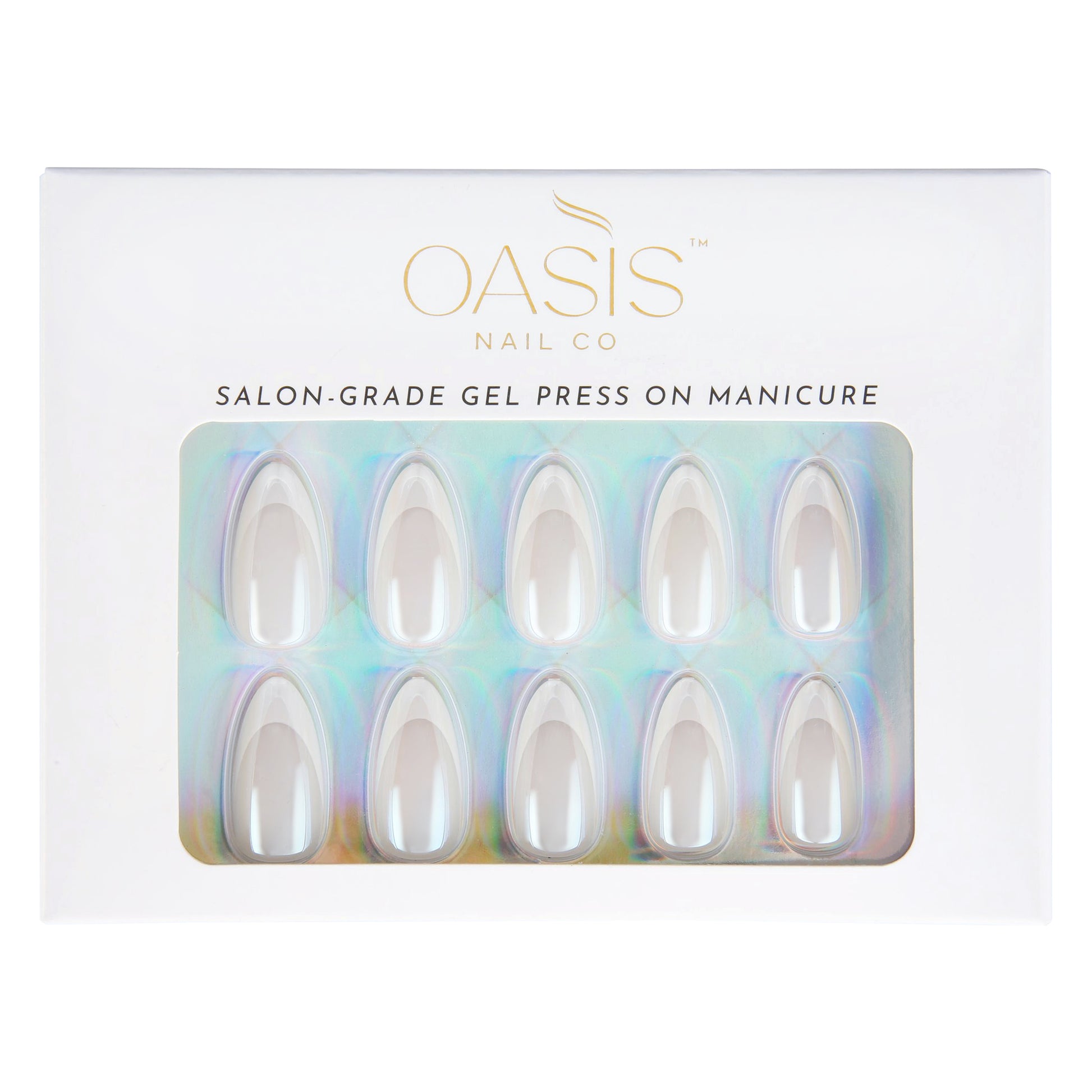 - Based on desired wear time, apply a suitable-sized sticky tab and peel the film off or apply nail glue to both the center or your nail and the press on.
